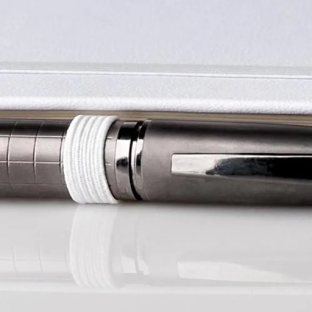 Caderno para anotações branco com capa dura. Conta com 80 folhas não pautadas, marcador de página, porta caneta e elástico para fechamento. Gramatura da folha de 70 g/m2. Tipo de gravação: Uma gravação em Silkscreen na capa. Dimensões do produto: 9,5x15,5cm Dimensões da embalagem: 105x150x15 mm (AxLxP) Peso da embalagem: 150 g Embalagem do produto: Caixa Preta