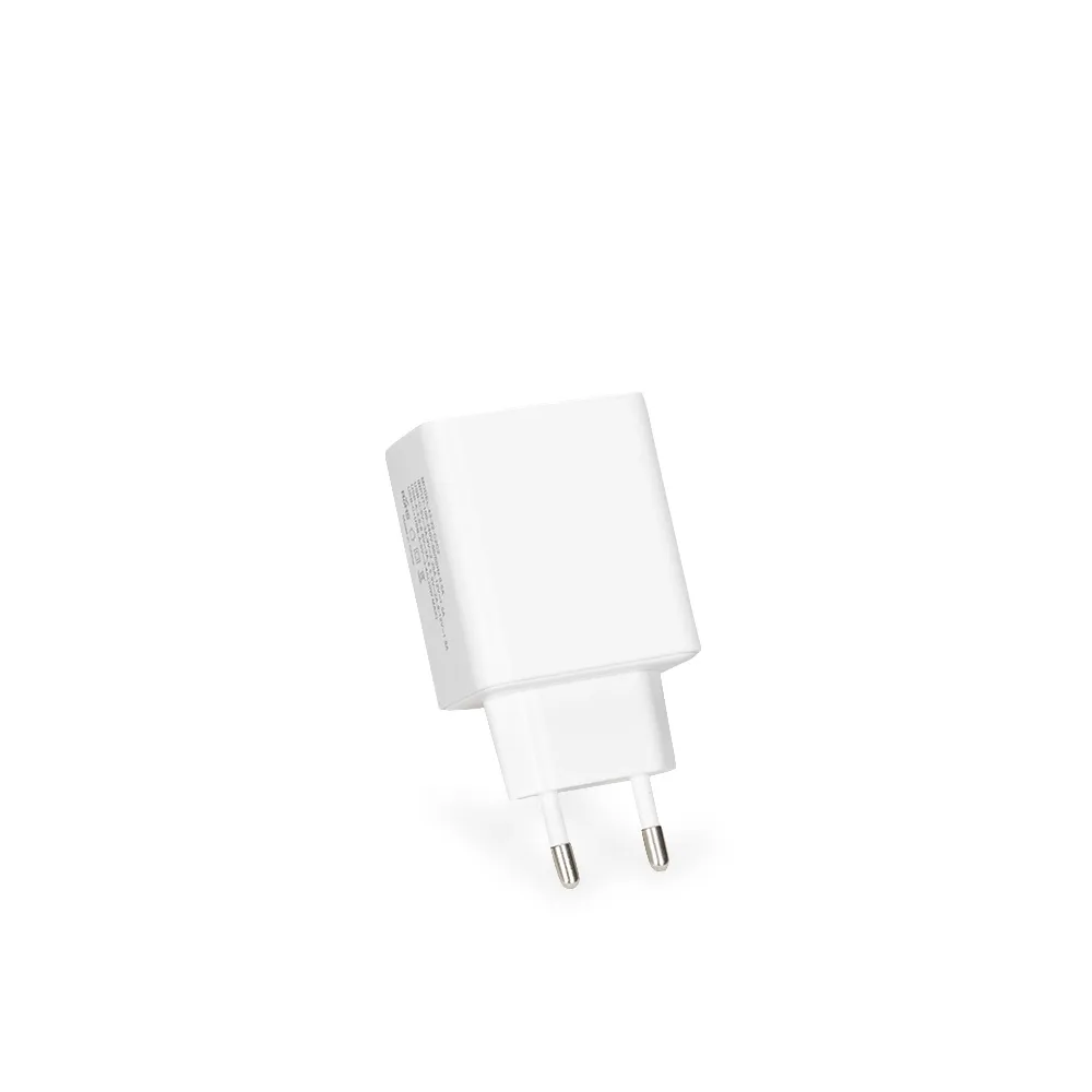 Carregador rápido de construção leve e compacto em plástico. Possui quatro entradas diferente, incluindo: uma porta USB convencional, uma USB com a tecnologia de carregamento rápido QC 3.0 e duas do tipo USB-C. Não acompanha cabo USB.
