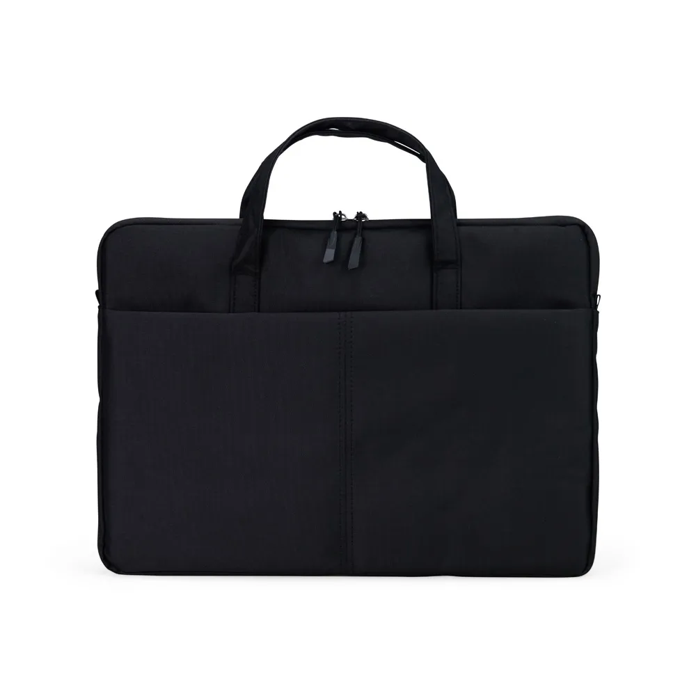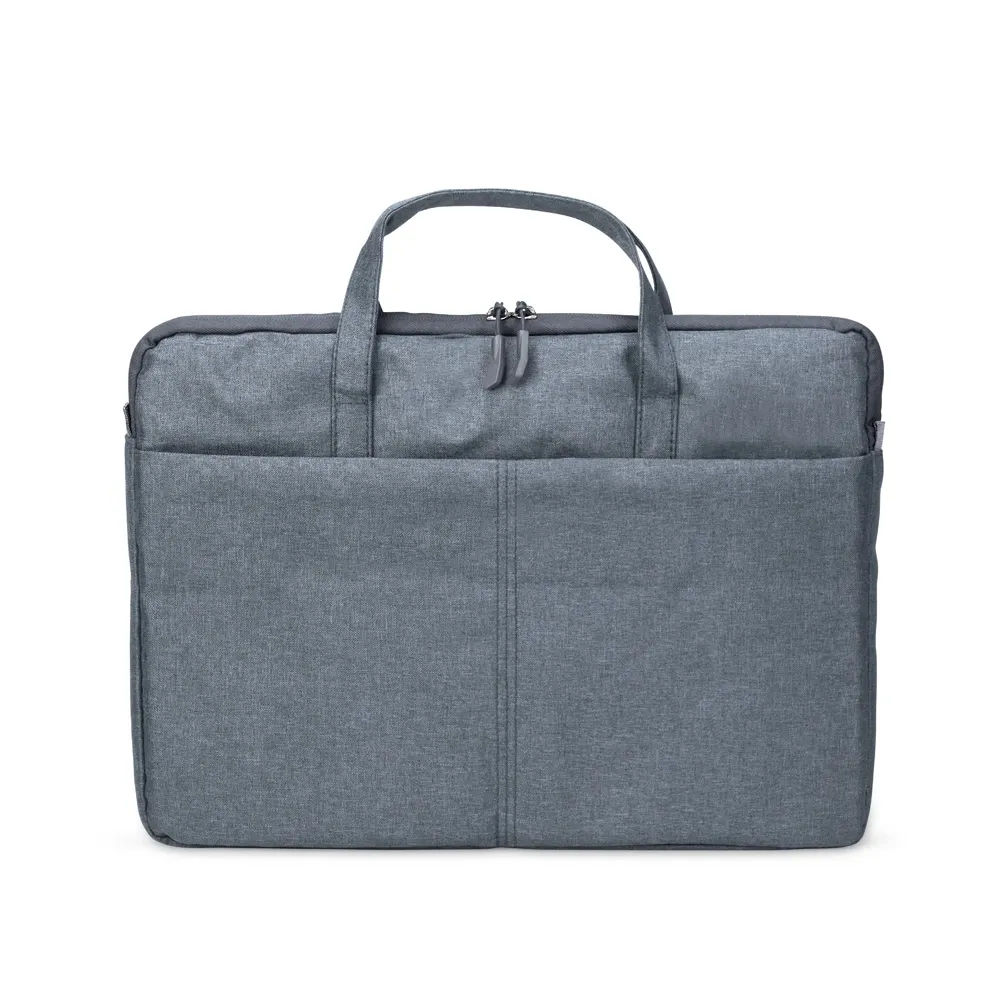 Pasta para notebook em poliéster impermeável, fechamento em zíper e capacidade para dispositivos de até 15,6 polegadas. Possui compartimento principal acolchoado e bolso frontal. Conta ainda com duas alças de mão, duas abas menores para encaixe de alça transversal removível e faixa posterior para acoplar em malas. Acompanha alça transversal ajustável.