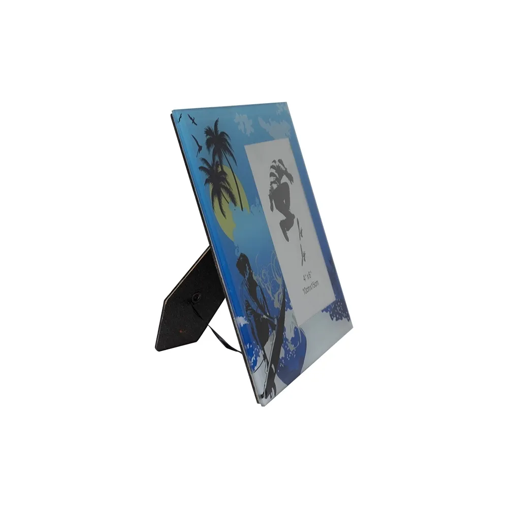 Porta retrato com frente de vidro e parte traseira (apoio) revestida de veludo.